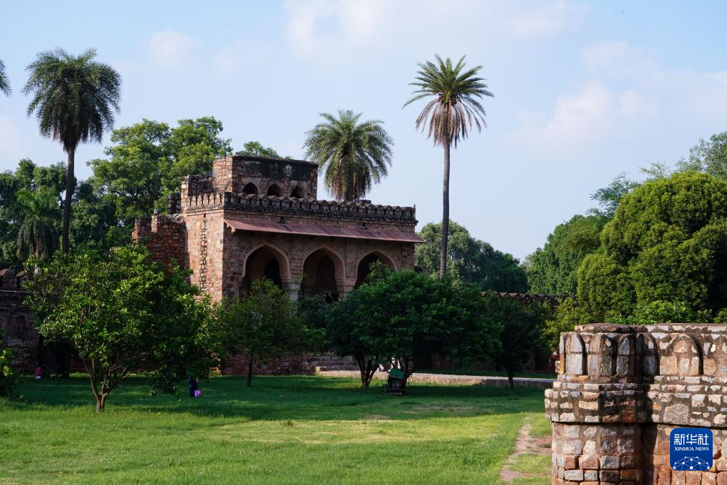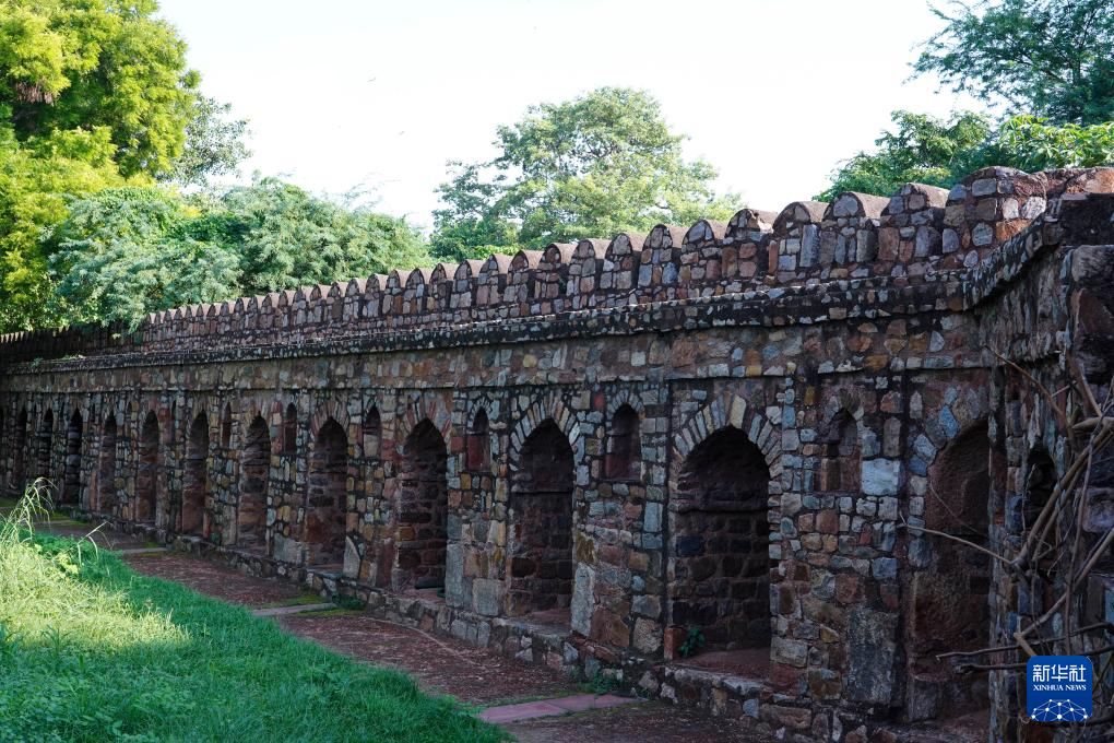 这是7月29日在印度首都新德里拍摄的胡马雍陵四周环绕的围墙。