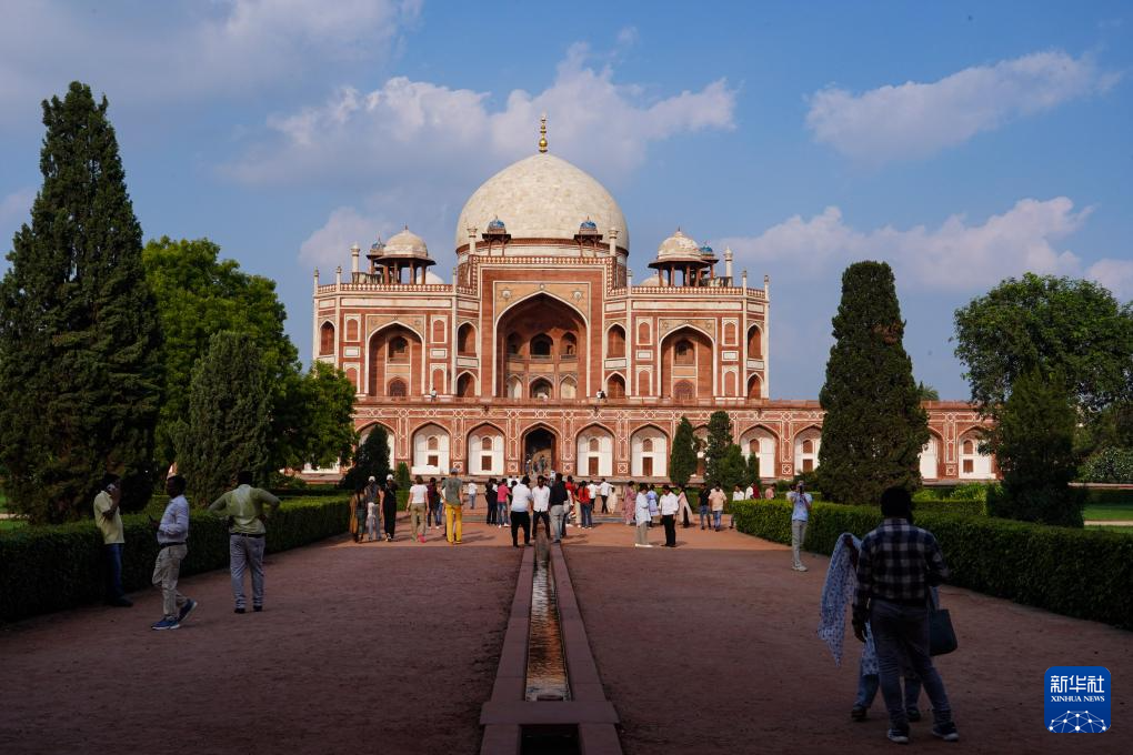 7月29日,在印度首都新德里,人们参观胡马雍陵。