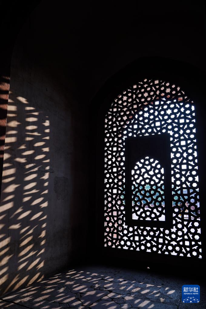 这是7月29日在印度首都新德里拍摄的胡马雍陵的雕花窗户。